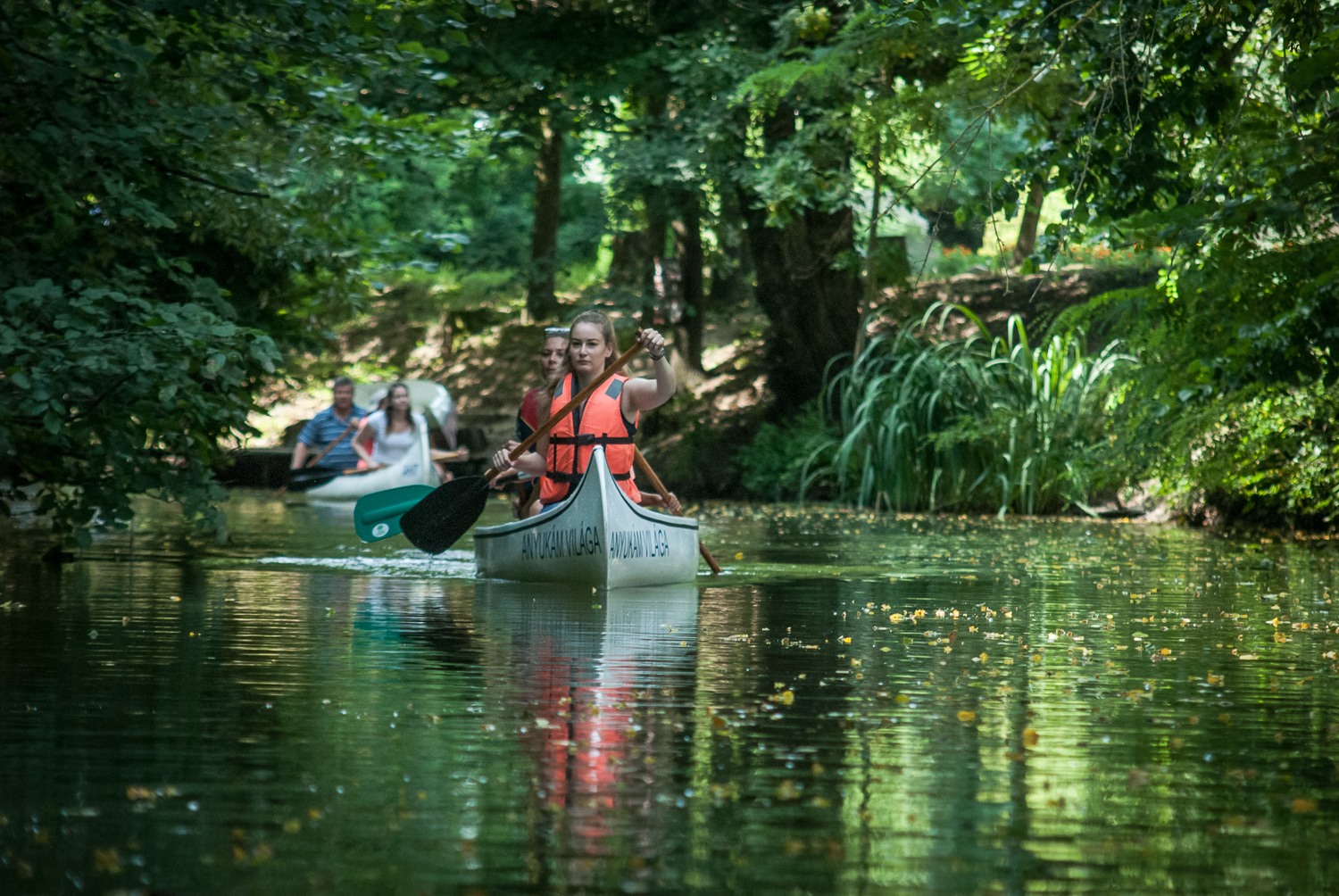 Gyönyörű, új vagy újszerű állapotú kenuk, lapátok, mentőmellények, túravezetés, szóval maga a vízitúra.